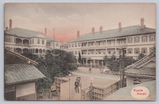 Early Vintage Kyoto Hotel Japan Postcard Rickshaw, Tourists, Architecture