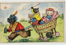 Vintage Postcard Anthropomorphic Cats / Dressed Cats - Rickshaw Cat