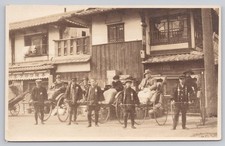 Vintage Real Photo Postcard of Rickshaws in Kyoto Japan Early 1900s