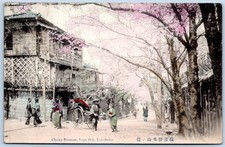 Postcard Yokohama Japan Cherry Blossom Noge Hill Rickshaw Hand Colored C224