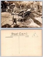 Vintage RPPC Real Photo Postcard Rickshaw Driver Man Pulling Jinrikisha