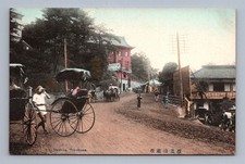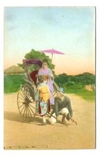 Antique Japan Jinrikisha Rickshaw Hand-Colored Postcard People Scene 1900s