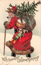 Antique Christmas Card Santa Toys Doll Tree Ornaments Lights Vtg Postcard I28