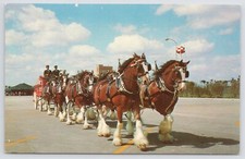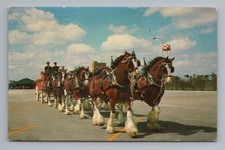 Postcard Anheuser Busch Budweiser Clydesdale 8 horse team Busch Gardens Tampa