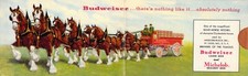 Double Folding Card, Budweiser, eight horse hitch, Clydesdales, 1940's-50's