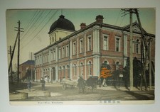 Japan Yokohama Post Office Antique Color Postcard Rickshaw Posted Card