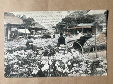 1908 HORIKIRI Tokyo JAPAN Geisha Iris Garden RICKSHAW RPPC Photo Postcard TEXAS