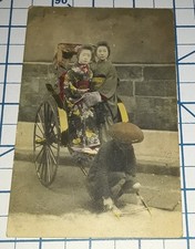 Antique Postcard JAPAN Japanese POSTCARD WITH 3 GEISHA GIRLS IN RICKSHA postcard