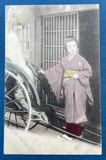 Japan Vintage Hand Colored Postcard Kimono Geisha Rickshaw Japanese Lantern