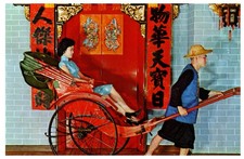 Postcard Easter Asian Woman Being Pulling in Rickshaw