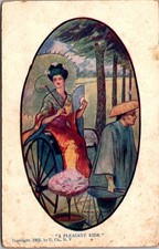 Postcard Woman in a rickshaw Romance Courting c 1908