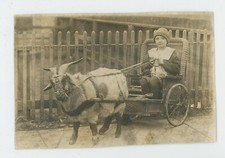 Vintage RPPC Cute Little Girl Wicker Bamboo Rickshaw Saddled Goat Pet 1900s