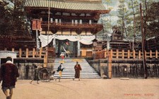 B552 Japan Temple Gate Kyoto Rickshaw Native vintage postcard
