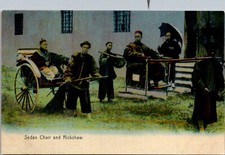 CHINA - SEDAN CHAIR & PEOPLE IN RICKSHAW - OLD POSTCARD