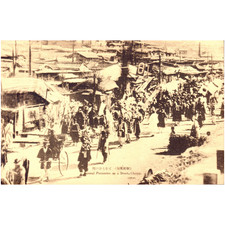 RARE Antique Korea Postcard Chosen Genre Funeral Procession Street Rickshaw PC