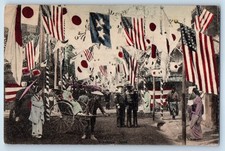 c1910's Great White Fleet Navy Yokohama Japan Flags Rickshaw Antique Postcard
