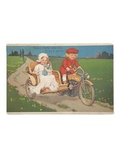 1912 Boy & Girl Rickshaw Motorcycle Picnic Embossed Postcard Posted