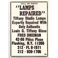 Tiffany Studio Lamps Repaired Fred Dikeman Flushing NY 1973 Ad SAI4-M16