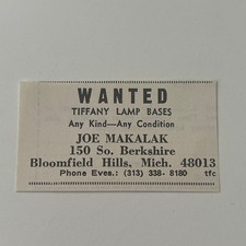 Wanted Tiffany Lamp Bases Joe Makalak Bloomfield Hills MI 1973 Ad SAI4-S83