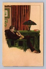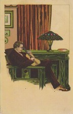 Vintage Postcard Somebody Thinks Of You Man Bowtie Tiffany Lamp 1909