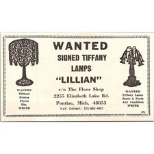 Lillian Wanted Signed Tiffany Lamps The Floor Shop Pontiac MI 1973 Ad SAI4-M14