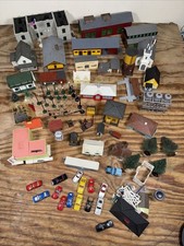 Vintage HO SCALE Cars Town Buildings Lot Toy Train Scenery Built Up Lights Lot