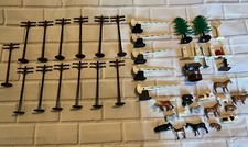 Vintage N SCALE Toy Train Accessory Parts Lot Station Building Caboose Animals