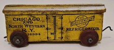 Vintage Wooden Toy Train Car Chicago & North Western Refrigerator 3.25" Long