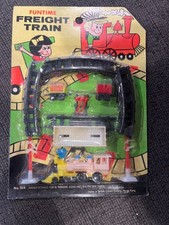 vintage dime store toy Mini Train set, plastic trains, track & signs NEW NOS