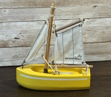 Vintage Bosun Boats Toy Model Boat Sailboat Yellow Wood 7” Nautical Decor