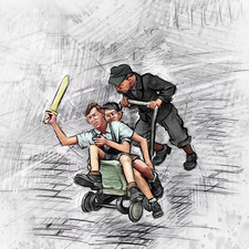 1/35 Scale Vintage Boys on Go-Kart Childhood Adventure Illustration with Toy Swo
