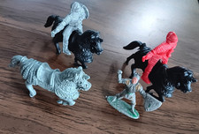 LOT OF6 VTG. PLASTIC KNIGHTS & HORSES MEDIEVAL CASTLE TOY BLACK SILVER RED