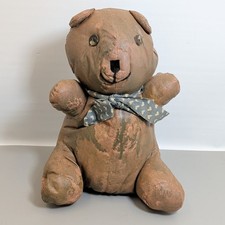 antique teddy bear straw heavy cotton rag doll bald rough primitive original