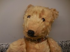 ANTIQUE MOHAIR TEDDY BEAR UNIQUE FACE WITH STUDDED COLLAR