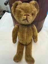 Handsome antique Unbranded Mohair teddy bear Fully Jtd Non Working Push Box 12”