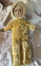 Antique Vintage Mohair Teddy Bear ? Eskimo Doll ? Painted Face Unmarked 15 in.