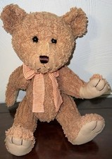 Vintage Russ Teddy Bear Plush Stuffed Animal Ribbon Bow Soft Fuzzy Toy