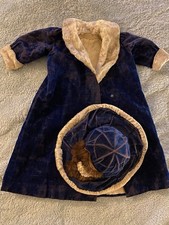 Lovely Antique Royal Blue Crushed Velvet & Fur Coat & Hat For Bisque Dolls