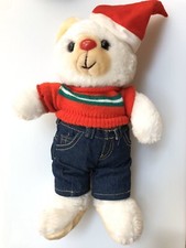 Vintage Lee Jeans Teddy Bear Plush Stuffed Santa Claus Christmas Toy Advertising
