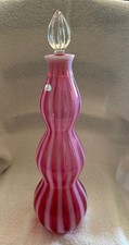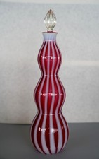 Vintage Fenton Art Glass Wine Bottle Decanter Cranberry Opalescent Stripe Tall