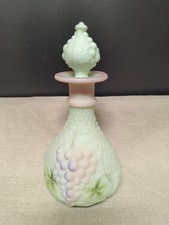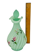 Fenton Lotus Mist Soft Green Burmese Grape Wine Decanter Hand Painted Signed