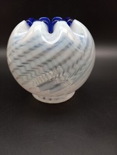 Fenton art glass opalescent optic swirl blue ridge rose round vase