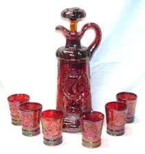 Fenton Red Carnival Glass 1976 HOACGA Whiskey Set Decanter & 6 Shot Glasses