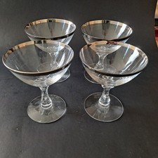 4 Fostoria Platinum Rim Champagne Coupe Gimlet Cocktail Glasses