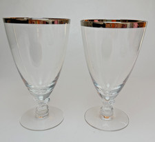 2 Fostoria Wedding Ring Crystal Water Goblet Silver Platinum Rim Vintage