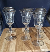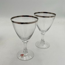 Set Of 6 Vintage Platinum Rim 5-Band MCM Crystal Wine Glasses Golblets