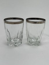 VTG MCM Art Deco Fostoria Silver Rim Crystal Rocks Bar Glass set of 2 Glasses