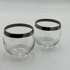 Vtg MCM Barware Platinum Band 2 3/4" ROLY POLY COCKTAIL GLASSES Thorpe Style
