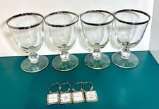 Vintage Crystal Small Wine Goblets Platinum Band Wedding Ring Set Of 4 Defect