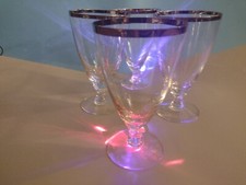 Vintage Footed Glasses with Platinum Rings Optic Glass